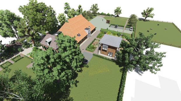 Op het royale erf worden een aantal vormen van dagbesteding gerealiseerd voor zowel mensen uit de woonvorm als cliënten van buitenaf. Ook het bestaande naastgelegen beeldbepalende kantoorgebouw zal deels t.b.v. de dagbesteding worden aangepast.