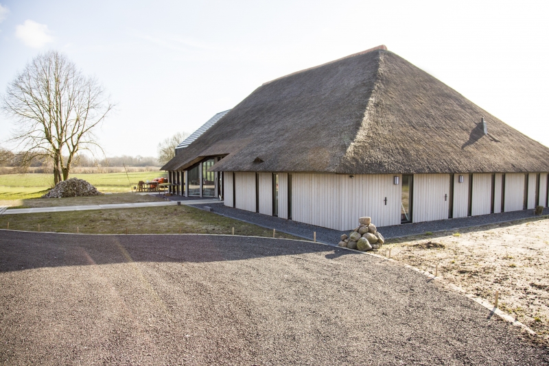 De oorspronkelijk rietgedekte schuur is grotendeels gehandhaafd. Bijzonder is dat het nieuwe woongedeelte als het ware in de rietenkap van de boerderij schuift. De gevels van de stal zijn vervangen door een houtskeletconstructie met een hoge isolatiewaarde (R=5.0) en een buitenbekleding van duurzaam Lariks.